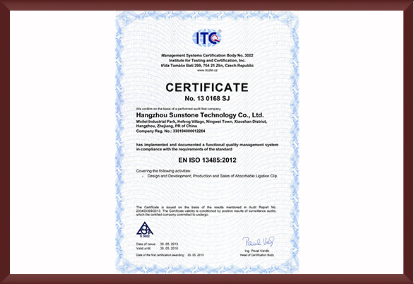 Hangzhou Sunstone Technology Co., Ltd., was established in 2005, is a manufacturing enterprise dedicated to the R&D and sales of innovative medical devices. The enterprise park covers an area of more than 7,000 square meters, and the enterprise assets exceed 30 million US dollars. The company is located in Hangzhou, China, with a production and office area of 20,000 square meters, of which the ISO 8 class cleanroom exceeds 1,000 square meters and the ISO 7 class cleanroom exceeds 500 square meters. Sunstone Technology is the first national high-tech enterprise dedicated to the research and development of absorbable medical consumables in Zhejiang Province, China. It has obtained the qualification of high-tech enterprise research and development center of Zhejiang Province Science and Technology Department of Innovation Medical Devices. Several of the unique medical devices we have developed have applied for Chinese and international patents. These projects are in different stages of research and development, some of which have entered the stage of registration and approval in China, and some in the stage of EU CE certification.